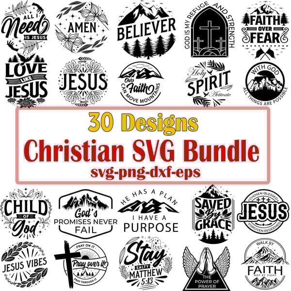 30 Christian Svg Bundle, Jesus Svg, Faith Svg, Christian Svg, God Svg, Cross Svg, God Jesus Svg, Psalm Svg, Love Faith Svg, Child Of God svg, Boho Christian Svg Files For Cricut